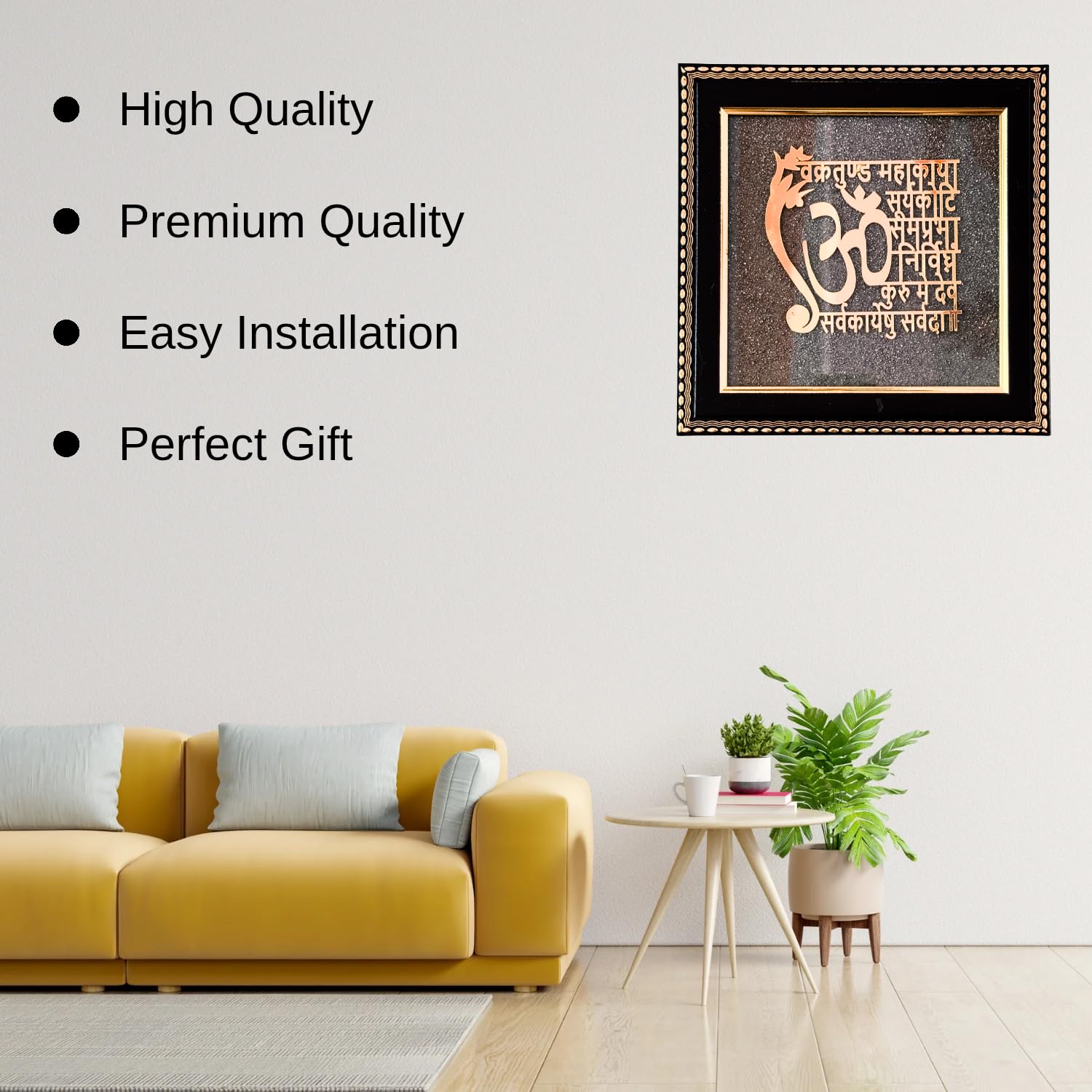 - Spiritual Home Decor: Elegant frame featuring the Ganesh Mantra with a Pyrite plate, ideal for promoting peace, prosperity, and positivity in your surroundings.
